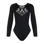 Body manches longues incrusté d'un grand motif brodé en tulle et satin pour apporter de la transparence au décolleté.
