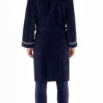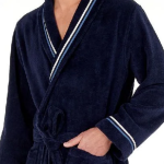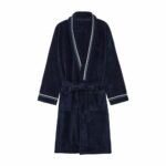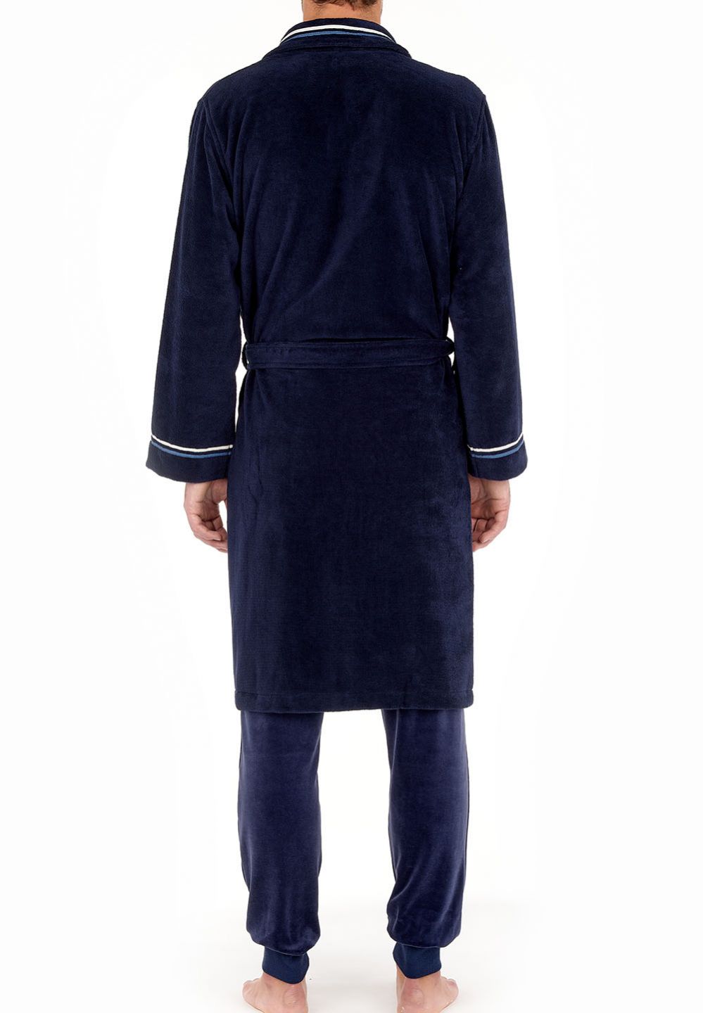 Le peignoir pour hommes TRANSAT est en velours de coton, ultra-doux et confortable. Il est de couleur unie, bleue marine aux finitions rayées blanches et bleues claires sur le col et aux extrémités de manches. Pour cultiver l’élégance jusque dans la décontraction... Existe en taille M à XXL à 135€